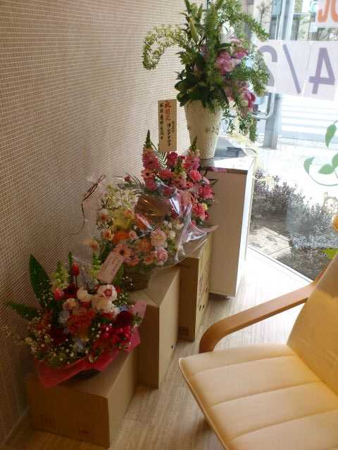内覧会の初日、2日目にお祝いに頂いた花達も日の光を浴びて元気にしています。